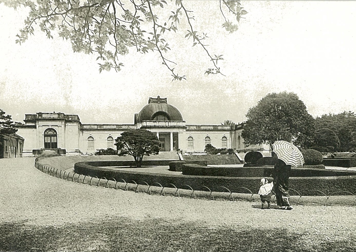 こちらは戦前の神宮徴古館。現在とは異なるドーム型の屋根が印象的です。ルネサンス式の美しい建物は、赤坂離宮や奈良国立博物館を設計した片山東熊が手がけ、建物の前面にはヴェルサイユ宮殿の庭園を模した美しい西洋庭園が造られました。