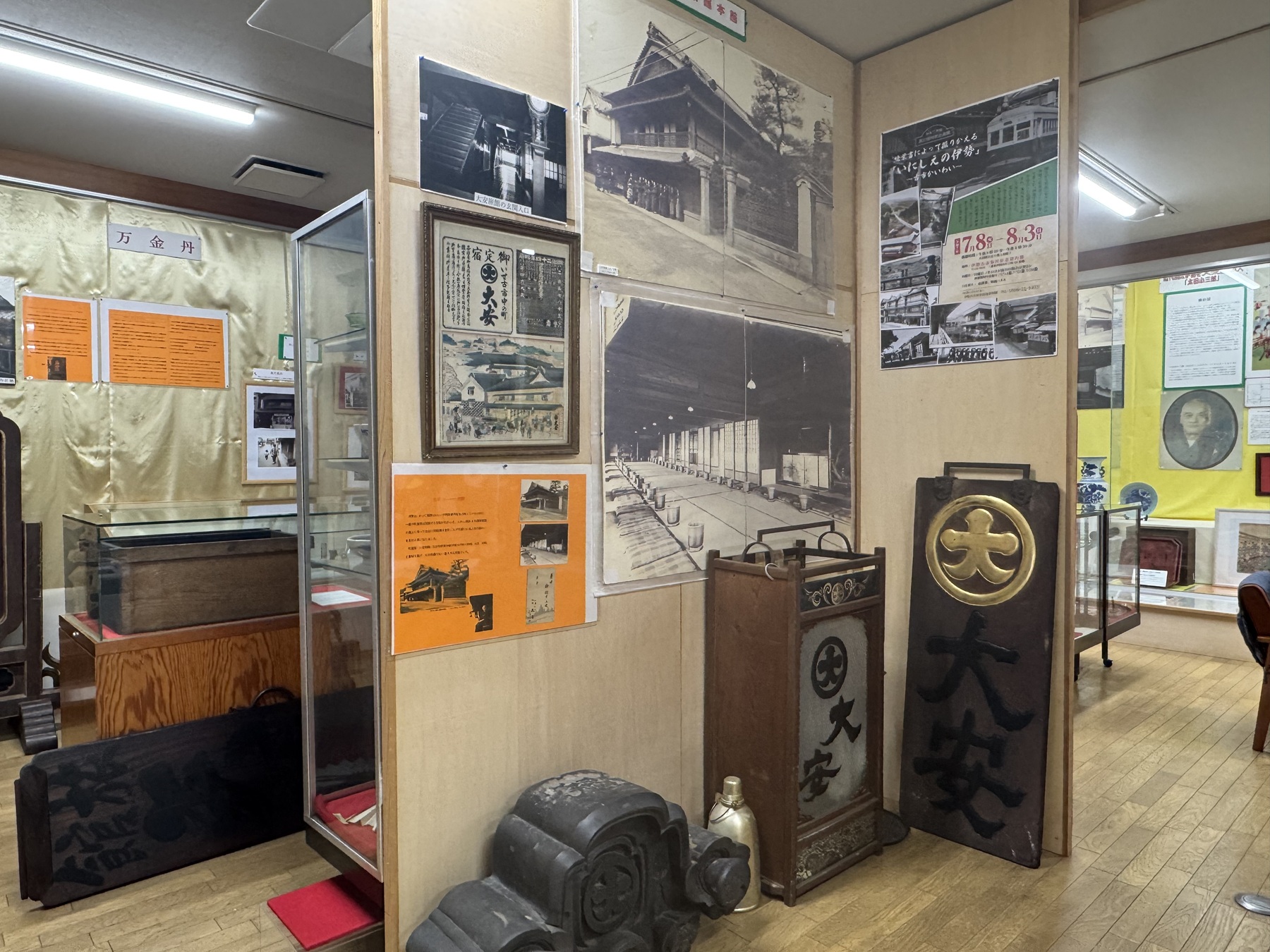 古市街道沿いにある伊勢古市参宮街道資料館には、大安旅館で使われた看板や調度品が保存されています。豪華な大広間など旅館内部の貴重な写真も見ることができますよ。古市の三大妓楼と呼ばれた備前屋・杉本屋・油屋についての資料や、油屋で起きた刃傷沙汰を元に作られた歌舞伎演目「伊勢音頭恋寝刃」の解説などが展示され、古市に生きた人々の息吹を感じられる資料館です。