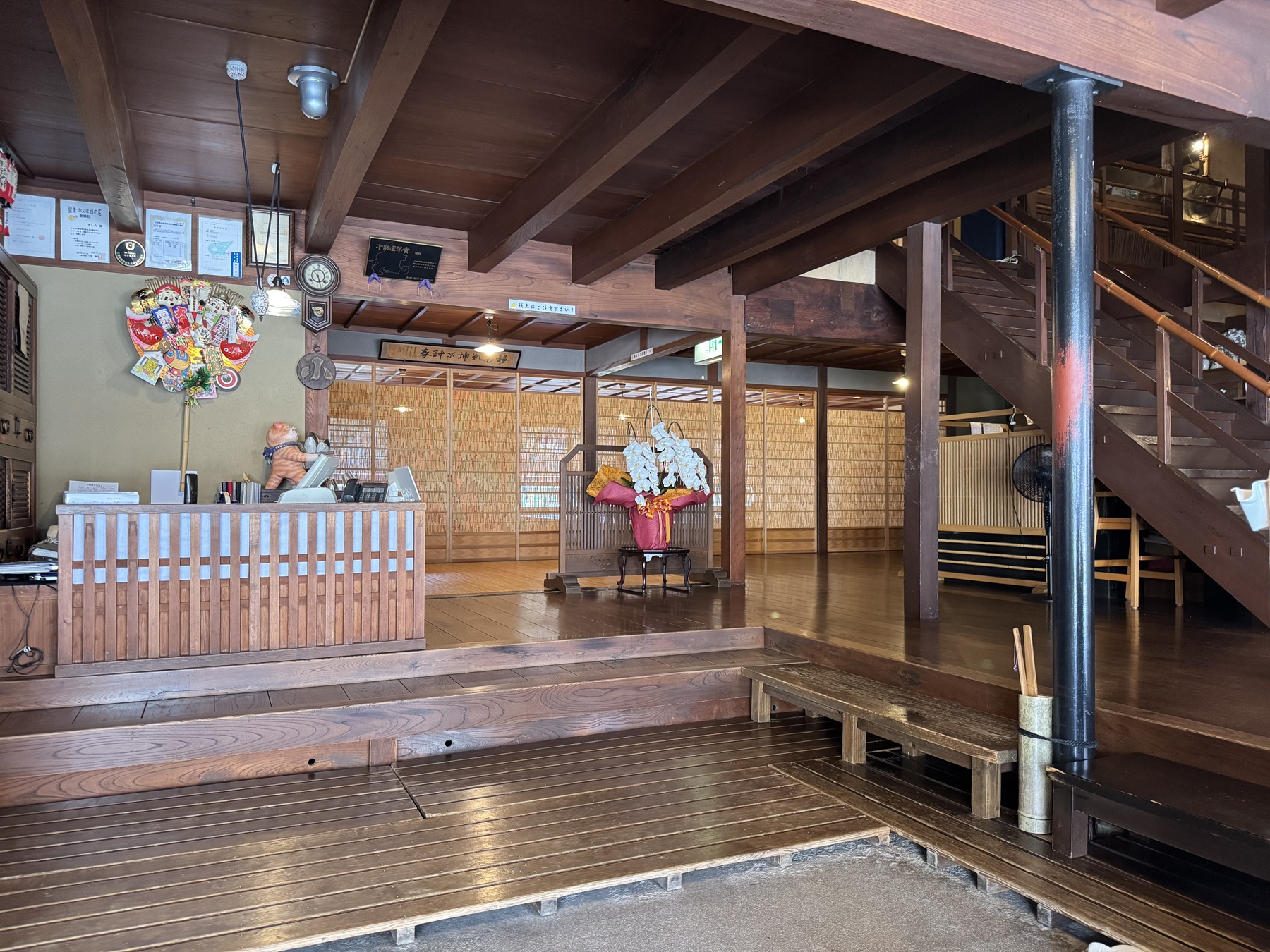 料理旅館の頃から殆ど手を加えていないという帳場周り。間口の広い店先から、大勢の客で賑わった華やかな料理旅館の繁栄を偲ぶことができます。