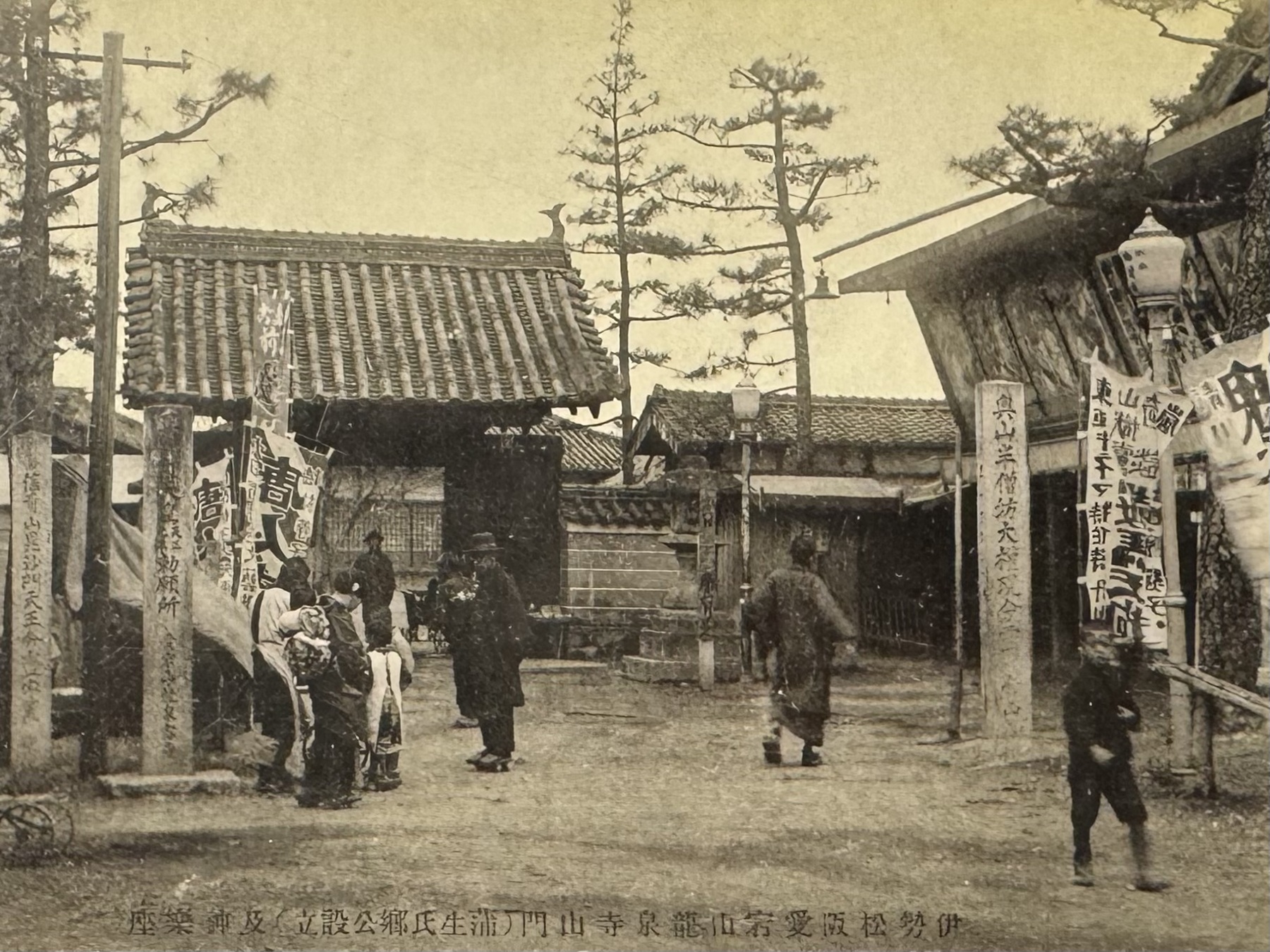 ※絵葉書「伊勢松阪愛宕山龍泉寺山門(蒲生氏郷公設立)及神楽座」:個人蔵