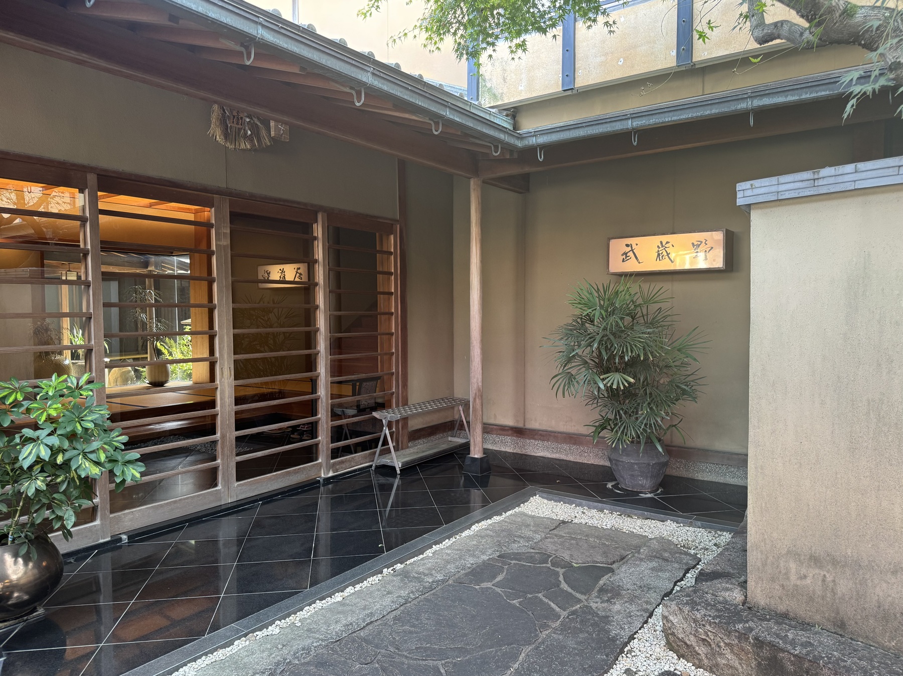 菅相寺の隣には200年の歴史を持つ料亭「武蔵野」があります。文政3年に広月楼の名で創業した武蔵野は、十数人の抱え芸妓を擁し、松阪の名士や文化人が集う格式高い料亭でした。