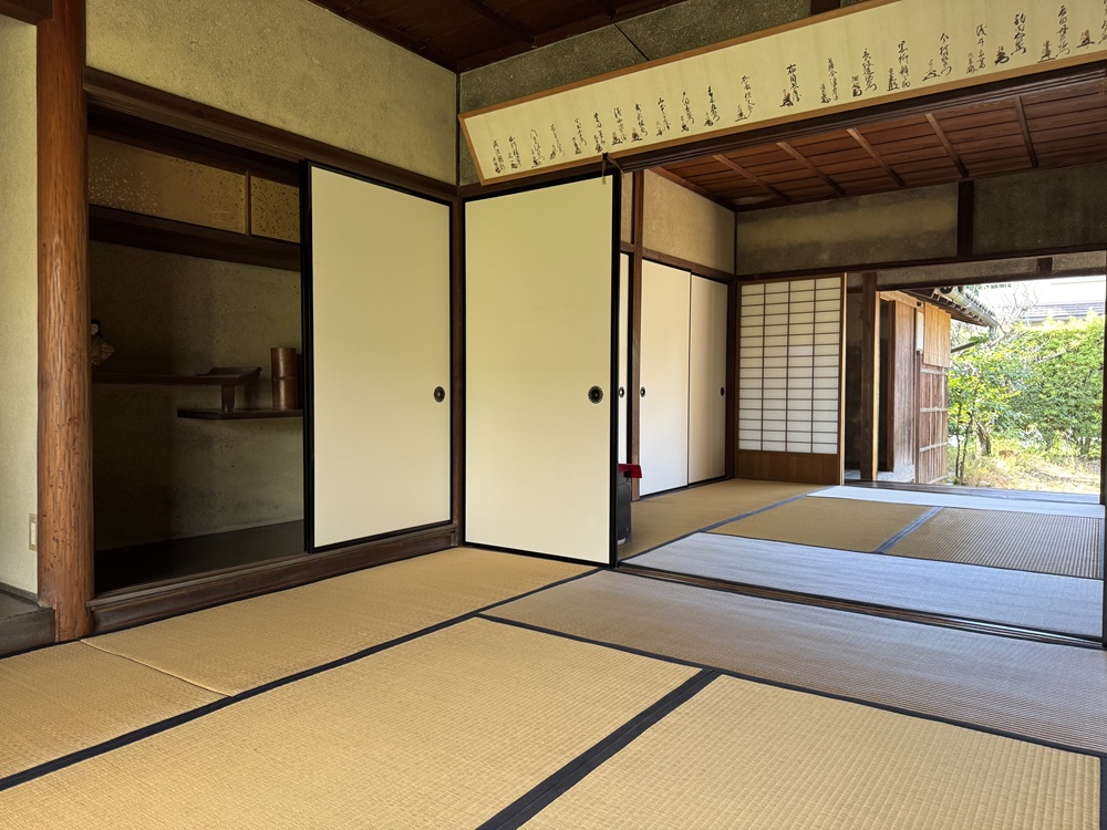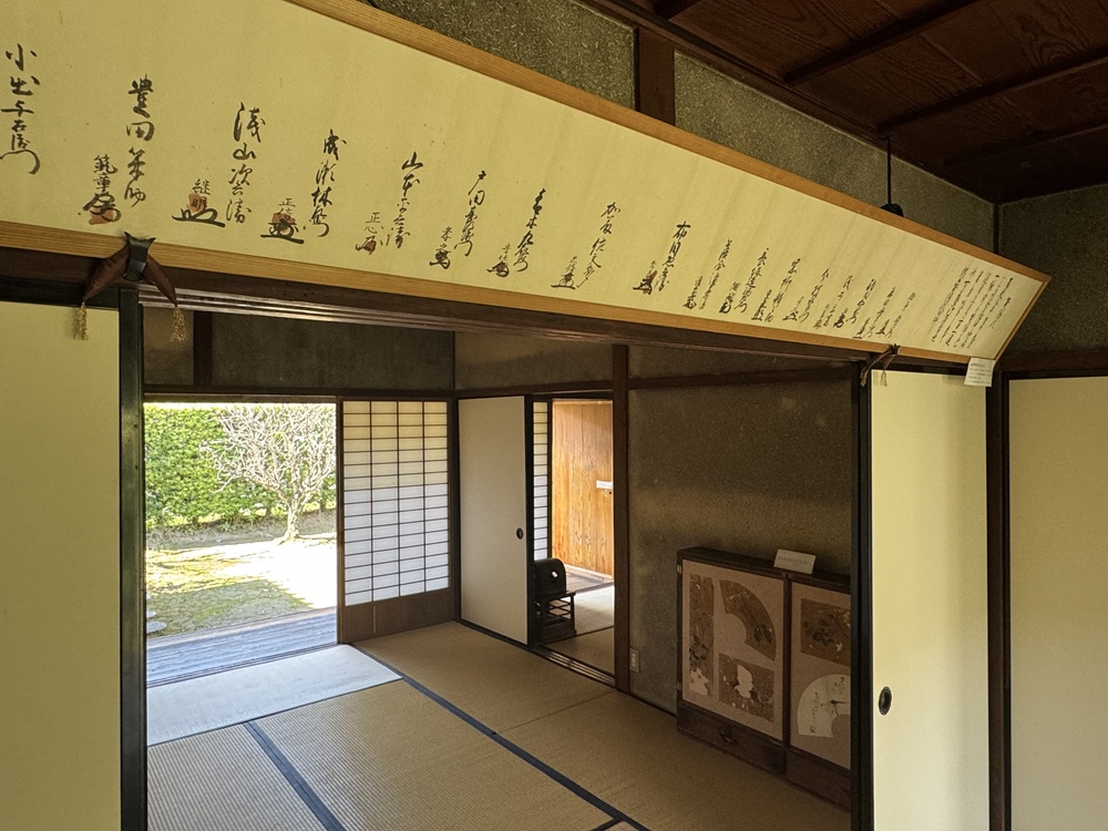 現在は西棟の一戸が建築当初の姿に復元整備され、一般公開されています。武家屋敷の特徴である式台付きの玄関があり、田の字型に配置された4つの居室、陽当たりの良い裏庭には畑が作られました。念願の帰参が叶い、新築の組屋敷を賜った藩士達の感激はどれほどのものだったでしょう。鴨居には浪人の身となって1年後、決意を新たにするために作成された血判状が飾られていました。
