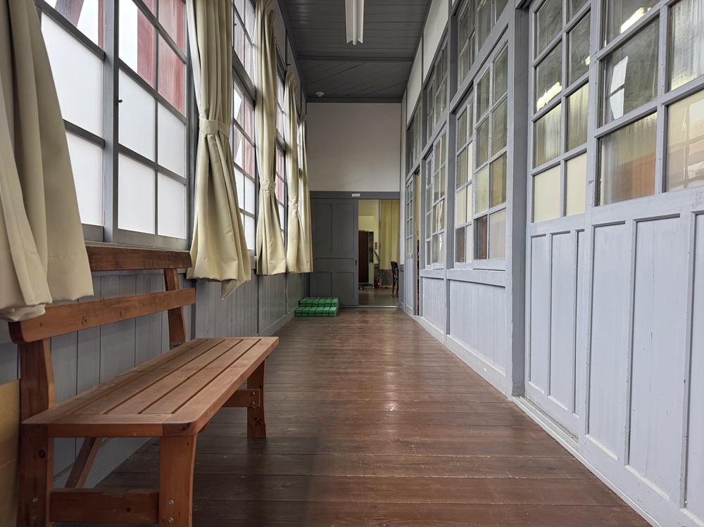 赤壁校舎の内部を見学させていただきました。木枠の窓やペンキで塗られた腰壁に木造校舎ならではの温かみを感じます。小津作品にも味わい深い木造の建物が沢山登場しますね。現在は資料棟となっており、工業学校創立からの貴重な資料が展示されていました。