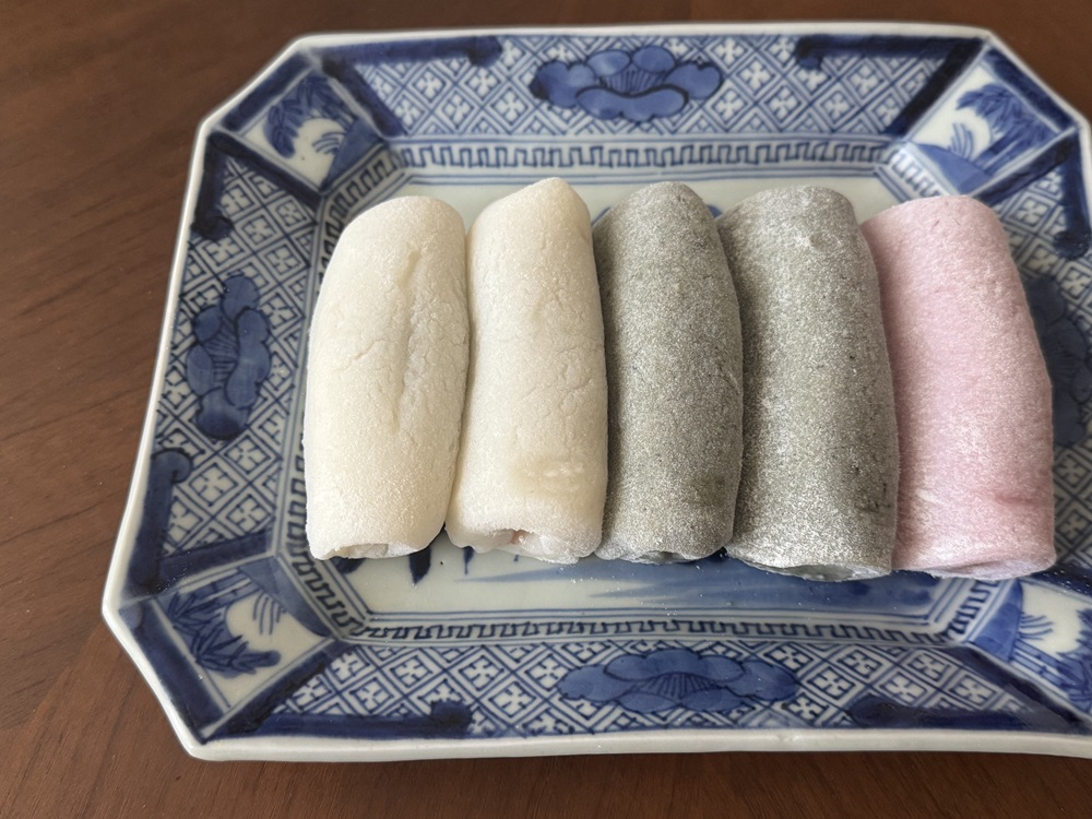 小津兄弟が金剛川で食べた「サワモチ(さわ餅)」は松阪や伊勢地方に伝わる郷土菓子。正方形の薄い餅に餡子を乗せて2つ折りにした素朴な餅菓子です。麗らかな春の陽気の中、兄弟仲良くさわ餅を頬張る姿が微笑ましいですね。