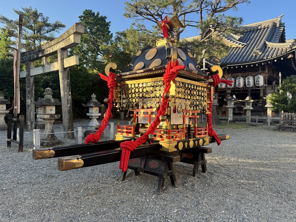 作文に書かれたのは江戸時代中期の元禄15年頃に作られた神輿で、現在は松阪市の指定有形文化財となっています。松阪祇園まつりの渡御は平成に作られた新しい神輿で行われますが、祭の日には文化財の神輿も本殿前に飾られます。