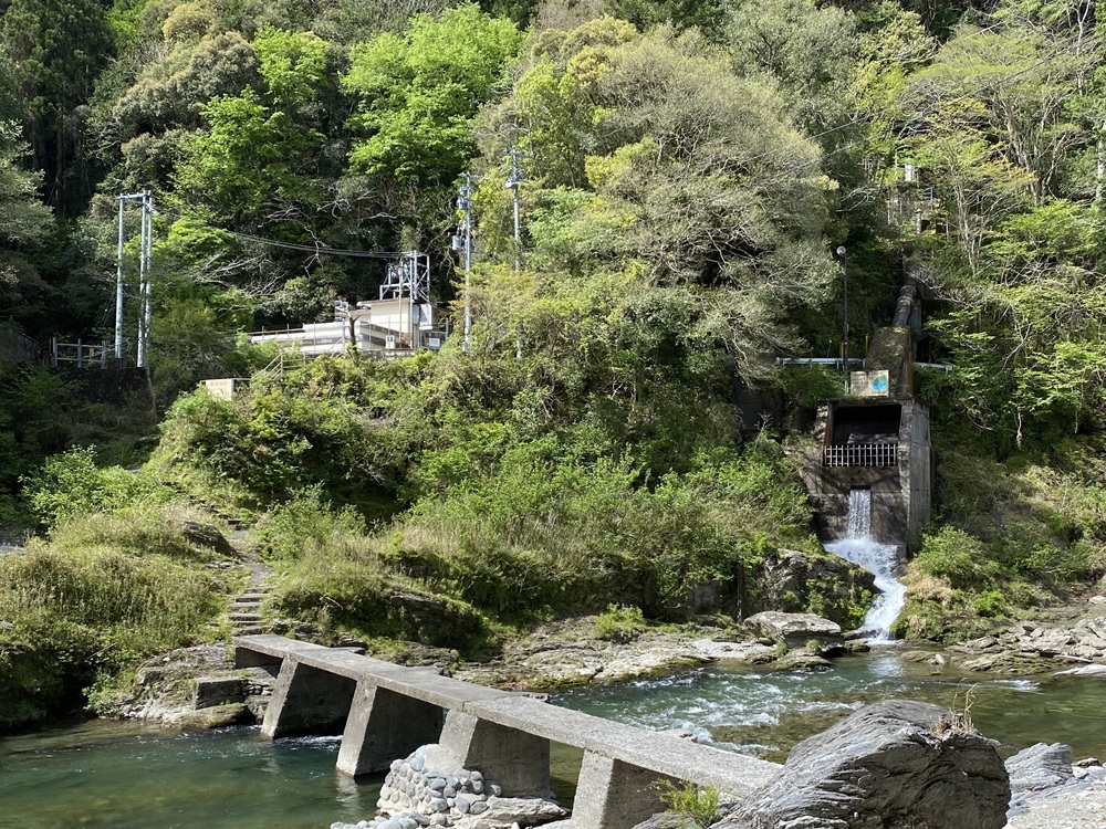 櫛田川には幾つかの橋があり、オーヅ先生がどの橋から帽子を投げたのかは諸説ありますが、野々口橋の下流にあった吊り橋ではないかと推測されています。かつて吊り橋が架かっていた宮前発電所の辺りに行ってみました。今はコンクリート製の沈下橋が架かり、風情あふれる風景が広がっています。