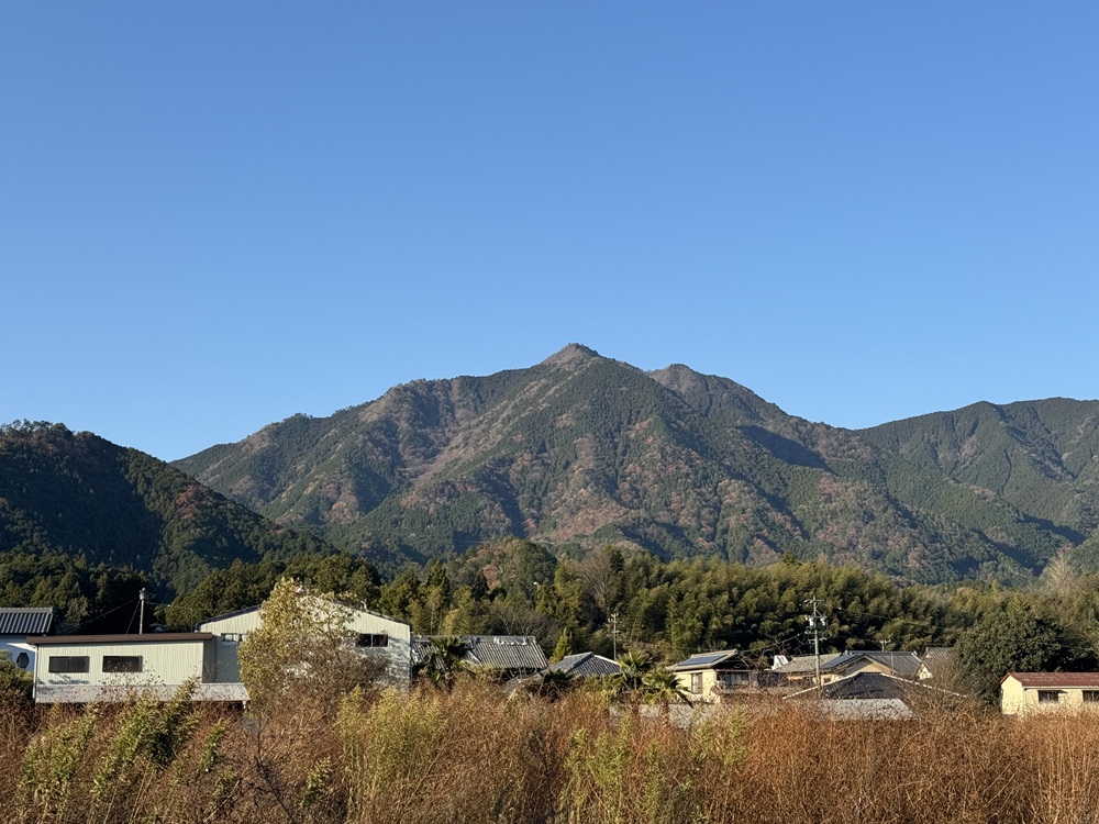 飯高町北部に聳える標高1,029mの局ヶ岳は、三角形の美しい山影から「伊勢の槍ヶ岳」とも称されています。地元の方々からは「岳(だけ)さん」と呼ばれ、宮前尋常高等小学校の遠足コースとして親しまれてきました。オーヅ先生も秋の遠足で生徒達と共に岳さんに登り、この遠足は多くの生徒達の思い出に残っています。登山をする時もオーヅ先生は普段と変わらぬ絣の着物にセルの袴、そして大きな下駄履きでした。