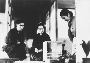 昭和16年公開の『戸田家の兄妹』では、父親が飼っている九官鳥の鳥籠と万年青(おもと)が縁側に並んでいる場面があります。小津新七家の本家・小津与右衛門家では九官鳥やオウムなど外国から取り寄せた珍しい鳥を飼っていました。小津監督は少年の頃、松阪の本家で九官鳥を見たことがあったのかもしれませんね。